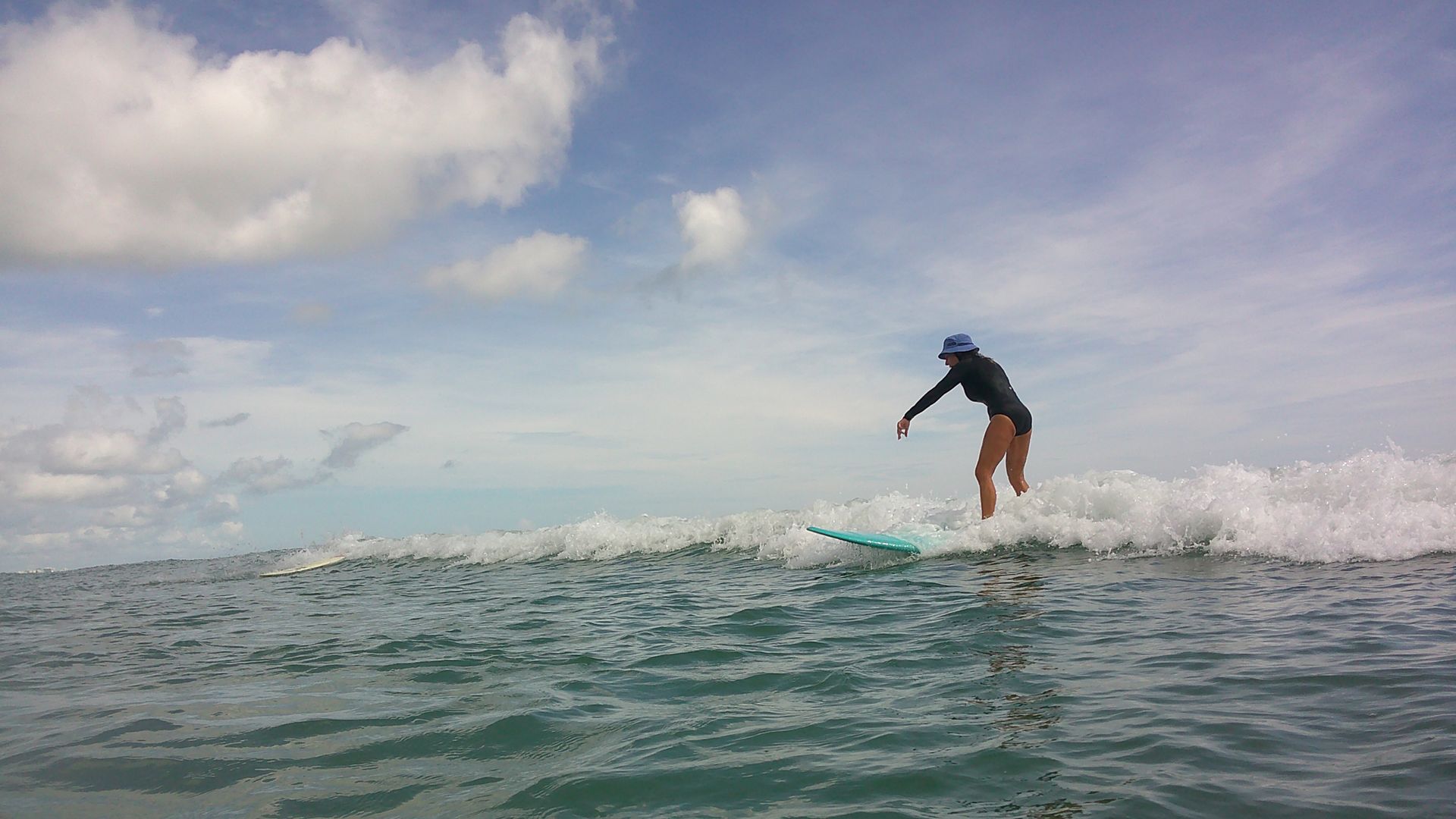 We often have really small waves in Florida in the summer, but if it moves, I’ll try to surf it. I joke that I am “Queen of the Microwaves,” and it’s true. We’ve had so many fun sessions all by ourselves in tiny waves. Happiness is truly a daily surf. Even if I get one wave, it makes the day so special.